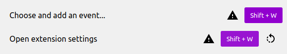 You can't use a key combination that is already used by another command. An exclamation mark will be displayed next to the conflicting combinations.