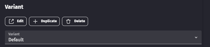 - Open the object editor and duplicate the default variant by clicking on the Duplicate button below the Variant title.