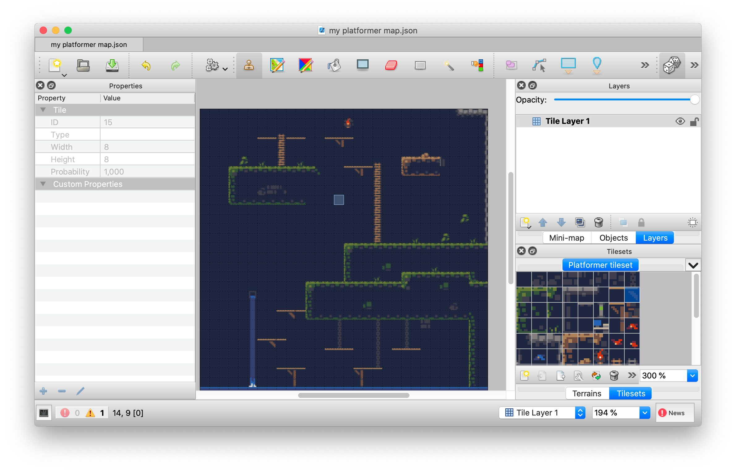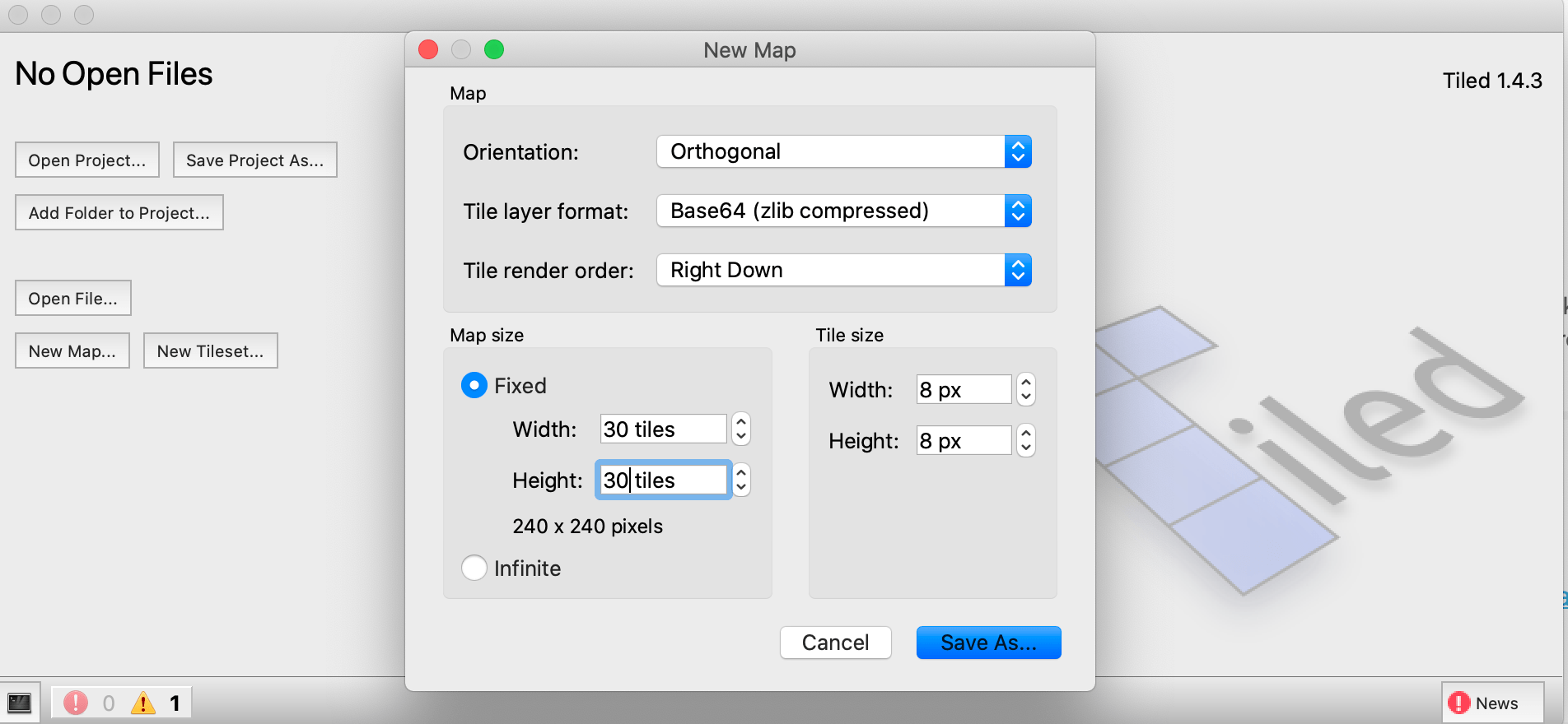 - Maps made in tiled must have a fixed size. Tilemaps set to "Infinite" will not function.