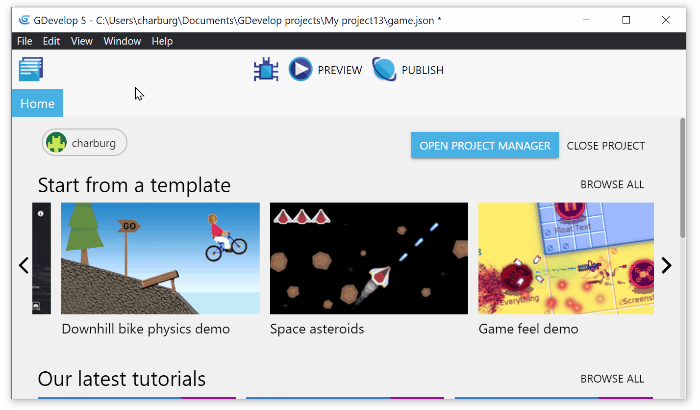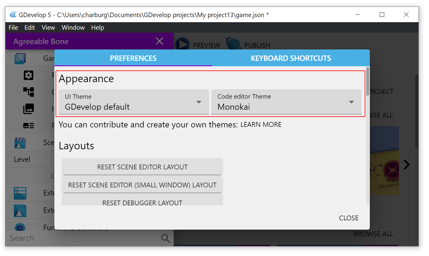 GDevelop displays hints and explanations for certain features. You can turn them off if you prefer.