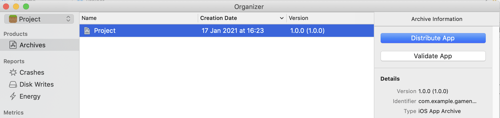 For iOS, it's recommended to open the project (workspace) in XCode and to use the menu Project > Archive.