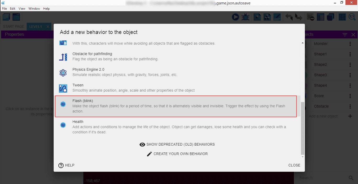While we're at it, we're gonna add another useful extension - "Flash". When the Monster will get hit by a bomb and lose one life, we will make him blink for a short period of time to give the extra feedback to the player about what happened.