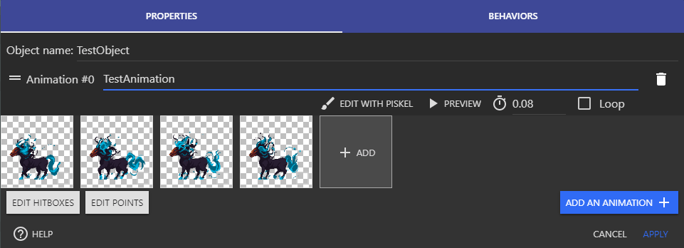 - Click ADD AN ANIMATION. The first empty frame and more buttons will appear.