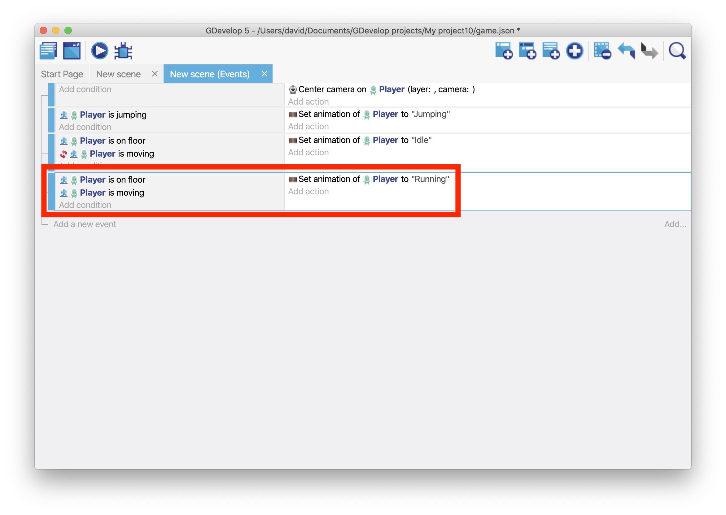 - In the Animation name field, enter the name of the "Jumping" animation. You must wrap this name in double quotes (i.e.