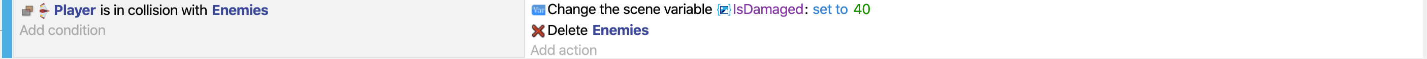 We will start adding a new condition to determine the collision between the player and the enemies. Follow the same procedure in the above.